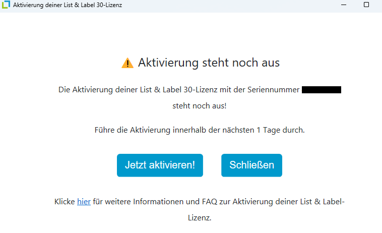 ich nutze ja List & Label schon länger, jetzt soll ich meine Lizenz erneut aktivieren: