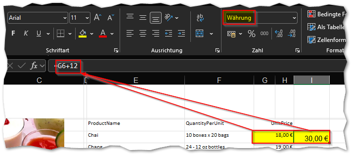 Das kommt zwar als benutzerdefiniertes Format in Excel an, ist aber ein Zahlenwert. Das benötigen wir, um die Anzahl der Nachkommastellen richtig einzustellen und gegebenenfalls auch eine Währungsformatierung vorzunehmen.