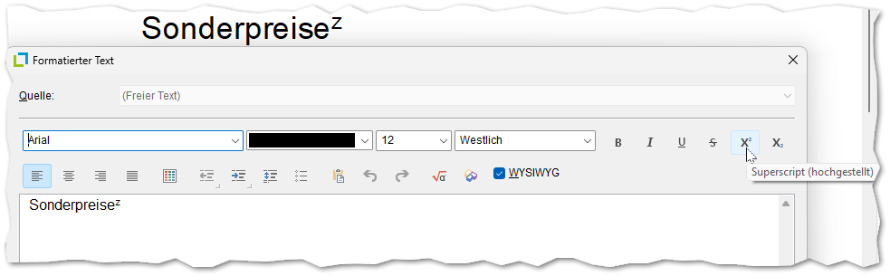 Allerdings soll das Z kleiner sein als der Preis UND wie ein Exponent dargestellt werden. Geht das mit einem Normalen Textfeld und einer Formatierungsfunktion?