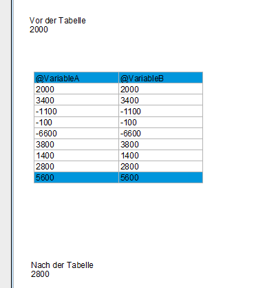 Ich habe mal mit der Berichtsdatei “VariableForum.lsr” versucht, das so wie von dir beschrieben nachzubauen, die ausgegeben Werte in der Tabelle stimmen hier allerdings überein. Die Berichtsdatei wurde allerdings mit List & Label 31 erstellt, öffnen könntest du sie mit Hilfe der Beispielanwendung von List & Label.