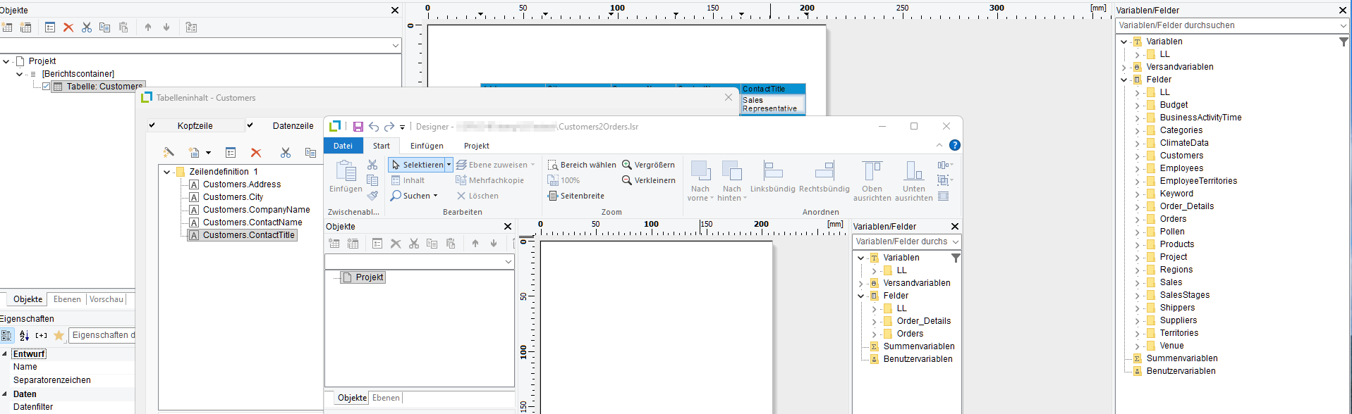 Die Relationen funktionieren im Designer einwandfrei und die Druck-Ergebnisse sind exzellent. Aber sobald ich einen Drilldown anlege, verschwinden Tabellen, manchmal auch erst beim zweiten Aufruf des Drilldown-Designers. Da ich davon ausgehe, dass ich nicht der erste bin, der Drilldowns verwendet, muss ich den Fehler erst mal bei mir suchen. Und da brauche ich Ihre Hilfe.