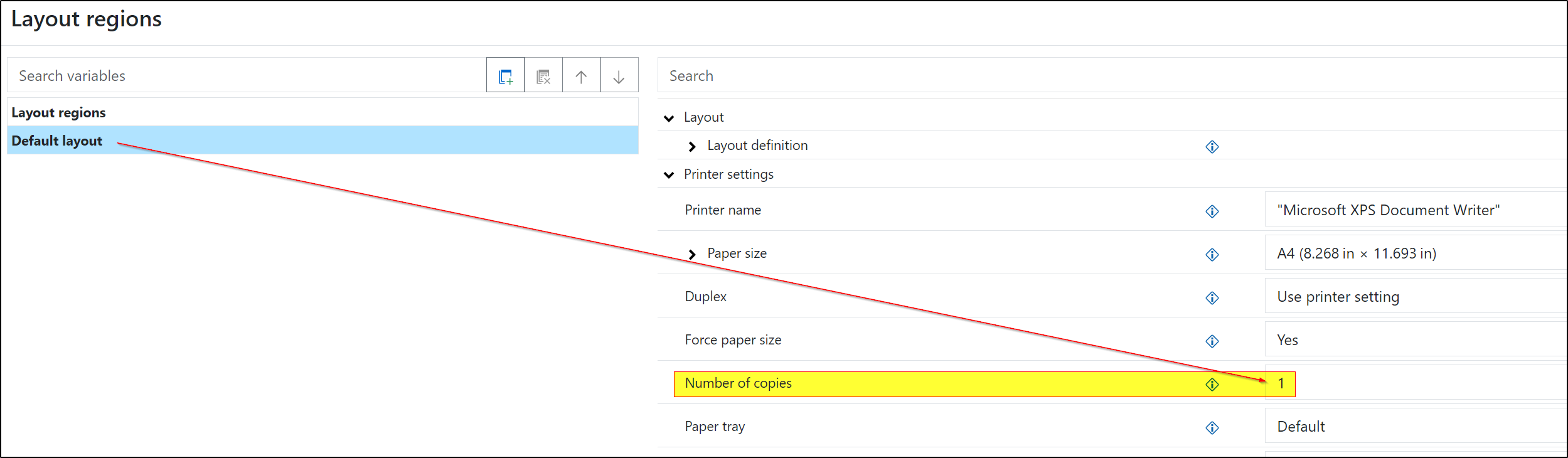 Can you please check what is stored in your new label for the property Layout regions > Number of copies?