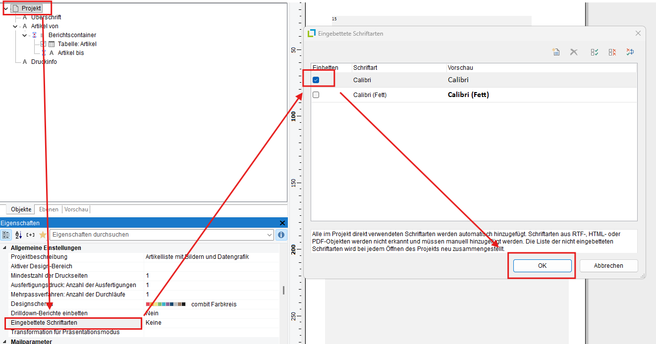 das einbetten der Schriftarten hat leider nichts geändert. Im Anhang findest du 3 Druckvorlagen, deren PDF-Ausgabe in PDF/A3u und zwei Textdateien, eine erstellt in Notepad++ und eine in Windows Notepad. In Notepad++ werden nämlich genau umgekehrt zu Windows-Notepad die Arial-Varianten korrekt dargestellt und die Calibri-Variante enthält ein unbekanntes Zeichen. Ich habe mir die Dateien auch mit dem Binary-Editor angeschaut, und festgestellt, dass beide Notepads die Dateien identisch speichert. In beiden Fällen wird die Arial-Variante mit den Bytes C3 A4 gespeichert und die Calibri-Variante mit 3 Bytes E2 80 90. Das wird alles wie gesagt über die Zwischenablage eingefügt. Ich arbeite auf Windows 11 25H2 und die Schriftarten Arial und Calibri sind jedenfalls auch installiert. Die Erstellung der PDF’s, die Anzeige und das Kopieren über die Zwischenablage passiert alles auf dem gleichen Rechner. Ich verwende List&Label 31 mit Servicepack 1.