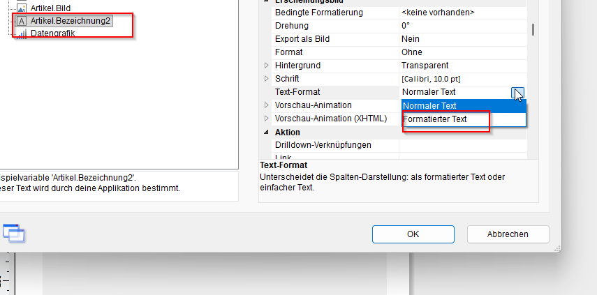 Gibt es eine Möglichkeit, das Format von Text innerhalb einer Tabellenspalte zu ändern? Zum Beispiel, dass innerhalb der Spalte zwei Wörter im normalen Format und das nächste Wort in Fettschrift stehen? Ich benutze Version 28