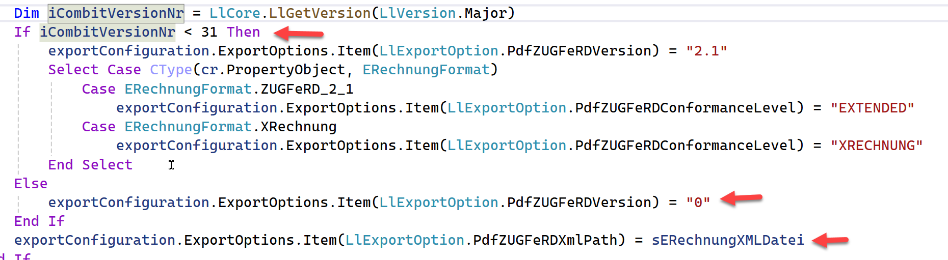 exportConfiguration.ExportOptions.Item(LlExportOption.PdfZUGFeRDVersion) = "2.1"